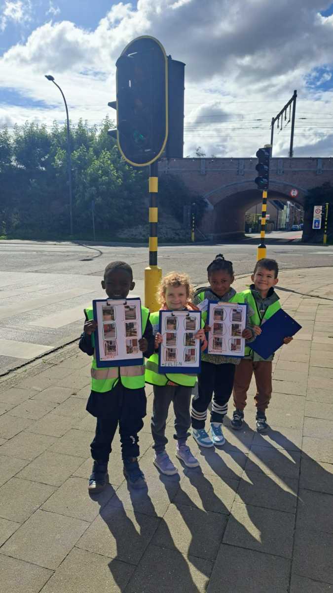 Onze bengels mochten op zoek gaan naar verkeersborden, verkeerslichten en zebrapaden, samen met ouders en grootouders. Ze gingen veilig op stap en leerden oversteken. Kijk maar!